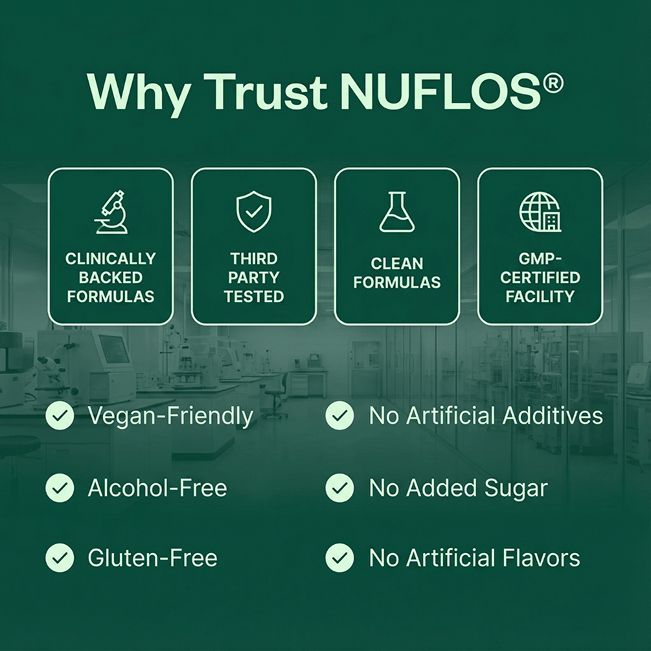 Your body deserves more than empty claims. Nuflos® delivers real, measurable results using ingredients with decades of clinical research.